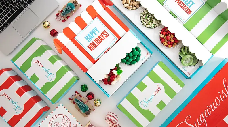 This includes a custom company page with access to custom eCards we design just for you. Think “You Made the Nice List" or "Wishing you a Sweet Holiday Season" eCards designed with your logo! You can send the eCards for your Sugarwish gifts from your page – as many as you want, whenever you want. The sweetest bonus? Company pages allow you to skip the checkout process so you will be on and off the site faster than you can say, “I just sent all my holiday gifts!"
