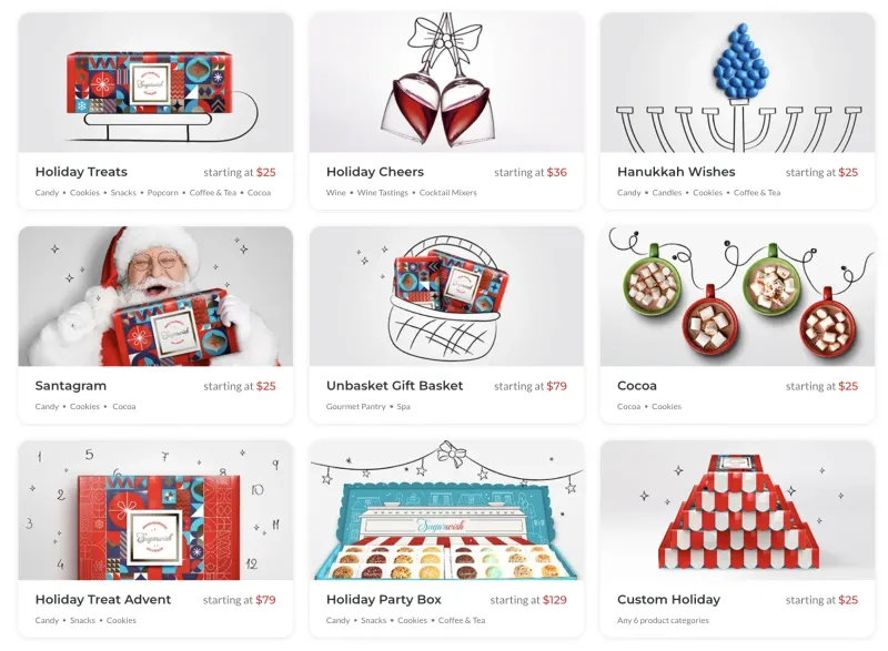 All of your holiday favorites are back, and you're sure to see some new ones too – including our fun new take on an "Unbasket" Gift Basket, a festive Holiday Party Box, and a new gift straight from the North Pole.