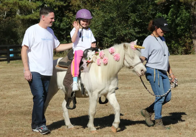 When Stella, age 7, completed her cancer treatments, she wanted to celebrate. This called for more than just cake — she wanted a “Stella-bration” with her friends, family and the incredible nurses and doctors that helped her during her cancer treatments. Make-A-Wish brought Stella’s vision to life, creating a truly memorable celebration after months of grueling treatments. She wanted a carnival-themed party with games, pony rides and a competition where she would finally get to race her dad — a special family tradition that her dad told her could happen once she finished her initial round of treatments.
