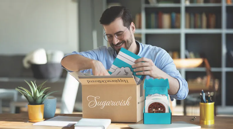 Here's how it works: you pick a gift category and budget, send instantly via email, text, Slack, or a shareable WishLink — no home address required — and the recipient chooses exactly what they want from a curated selection. Sugarwish handles packaging and delivers straight to their door.